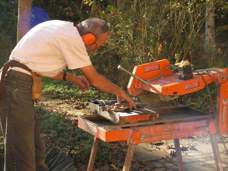 Ik heb vervolgens twee dagen dakpannen staan zagen om de punt op de i