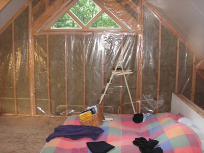 in onze slaapkamer aangelegd. De wand kon nu gevuld met isolatiemateriaal