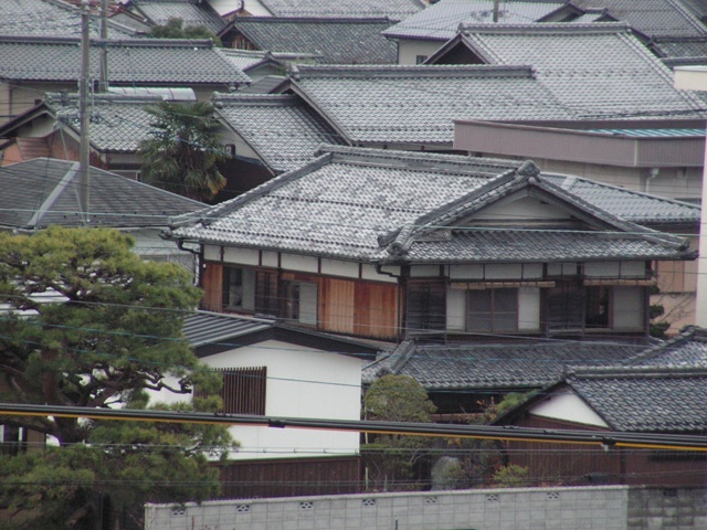 Linde moet vroeg in de middag in Amsterdam zijn en zij zet me op Schiphol af. Jan komt even later en we gaan meteen inchecken en gaan direct door de douane om nog een bakje te doen. Het gedeelte van het vliegtuig waar wij zitten is vrij leeg volgens het inchecksysteem. Dat blijkt ook wel, want we hebben ieder 3 stoelen en kunnen dus zelfs een beetje liggen slapen. In de slurf van de gate kan ik al een eerste indruk opdoen van de komende wereld. Ik sta te midden van een heel kaboutervolk. Zeker 40 dames om me heen die allemaal kleiner zijn dan Ter. Ik lijk wel een halve meter langer. Zolang de batterij van de PC het volhoudt ben ik aan het werk aan de IFSC Climbing Rules 2010. Het lukt me om een groot deel van de conversie waar ik aan het werk ben af te krijgen. Daarna diverse sudoku's extreme opgelost met het in de stoel ingebouwde computer en info-systeem. Daarna een beetje slapen en in de morgen drie levels Sjanghai gedaan. Is wel geen Japans, maar een Chinees spel, maar het brengt je toch al in een oosterse sfeer. We lijken midden op zee te landen, maar de piloot blijkt toch de juiste baan van Osaka Kansai gevonden te hebben. Met een magneettreintje naar het vluchthavengebouw. Immigratiepapieren zijn al in het vliegtuig ingevuld. Jan mag toch zijn koffer uitpakken, maar daarna mag ik zo door. We moeten met de trein naar Maibara. Kaartje kopen kost ca. 5 minuten. De man wil alles weten en vraagt eindeloos om bevestiging van zijn keuze. We krijgen ieder drie kaartjes mee. Eerst met de Haruka Express. Ziet er al redelijk futuristisch uit. We hebben gereserveerde plaatsen, maar welke is wat lastig van het kaartje te lezen. Waar we op het perron staan, stopt een wagon met niet gereserveerde plaatsen. De conducteur wijst ons er met een buiging op dat we verkeerd zitten en waar we zouden moeten zijn. Maar we mogen wel blijven zitten. De man knipt de kaartjes en noteert in een schriftje waar je geacht wordt uit te stappen en op welke stoel je zit. Na elk station komt hij weer langs, tuurt in zijn schriftje en slaat keurig alle mensen over die hij al gecontroleerd heeft. Ik ben er van overtuigd dat je vriendelijk de trein uitgezet wordt als je te lang blijft zitten... Als hij naar de volgende wagon loopt, draait hij zich bij de deur om, maakt een buiging naar de passagiers die zo vriendelijk waren hun kaartje te laten controleren en gaat naar de volgende wagon. Zitruimte in de trein is zeker zo goed als bij ons in de eerste klas. Geluidsniveau als in de beste treinen in Nederland. De Haruka Express is een soort sneltrein, slaat heel wat stations over en brengt ons in 50! minuten van het vliegveld in het zuidwesten van de stad naar Shin-Osaka in de noordelijke helft van de stad. Na Tokio de grootste stad van Japan. Het gaat gewoon eindeloos door met huizen en bedrijven. Vele tamelijk westers van uiterlijk, maar hier en daar de traditionele bouw. Leuk om te ontdekken hoe het bouwen hier eigenlijk hoort.